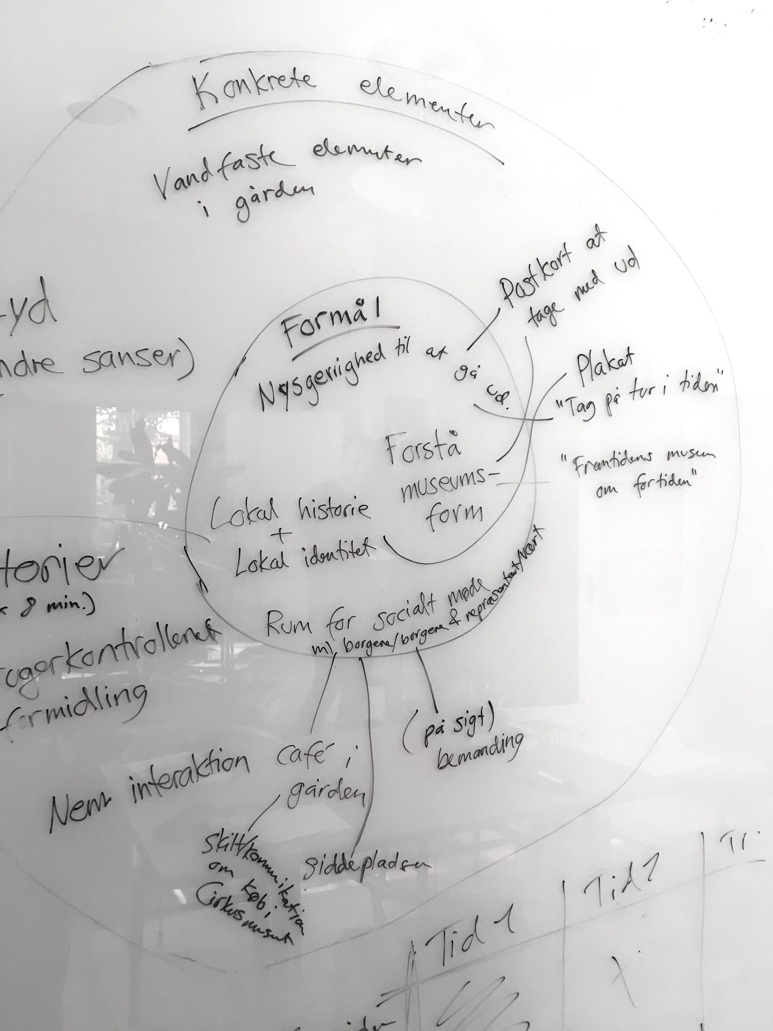 Even though ideas were created for the entire building, the team agreed that the most important thing to focus on was the main room and the experience it was supposed to give and the understanding it was supposed to give to the visitors in regards to what kind of museum Forstadsmuseet is. This room needed to be prototyped in low fidelity—just enough to communicate to the other employees what kind of experience the exhibition would be and to be able to discuss internally.